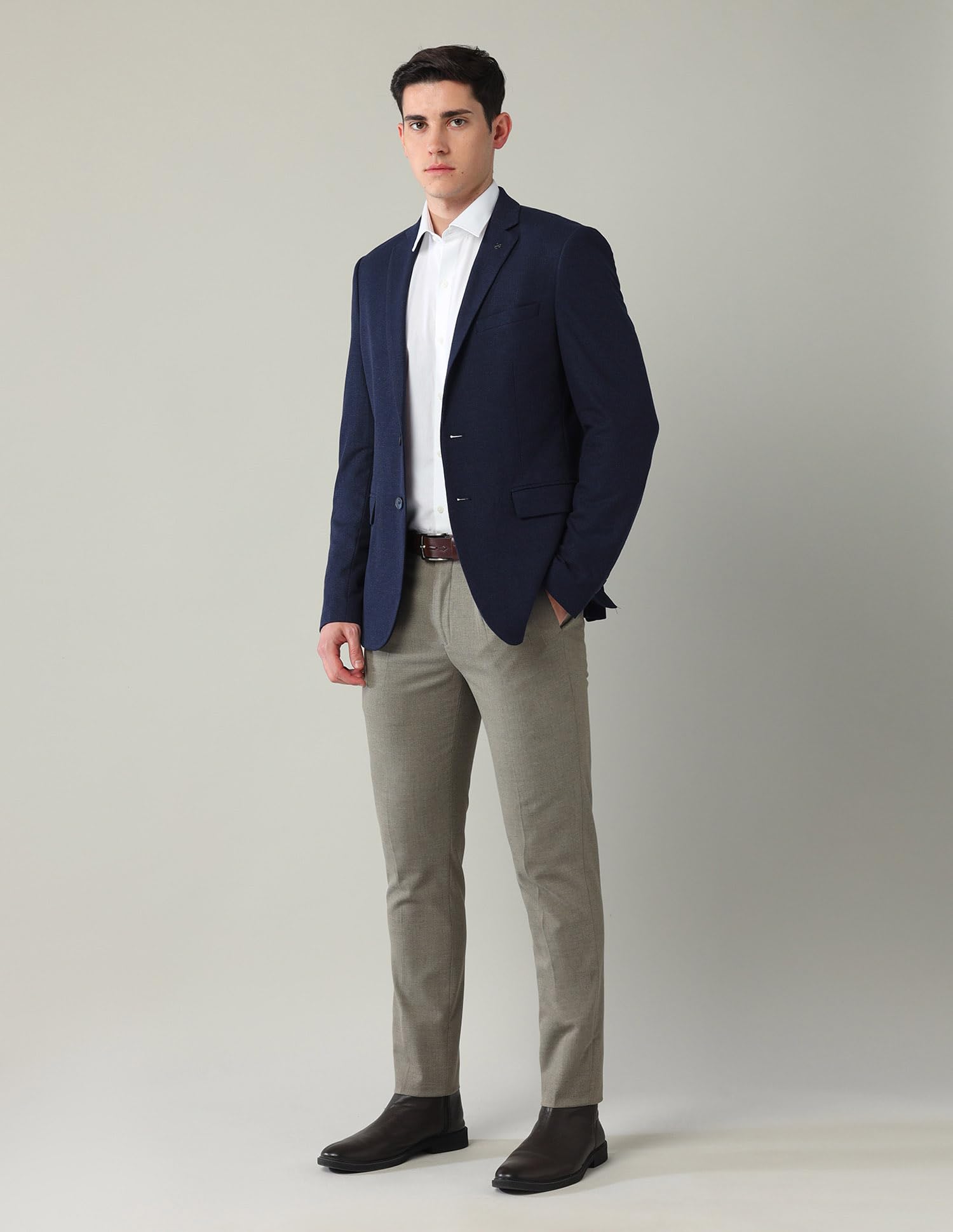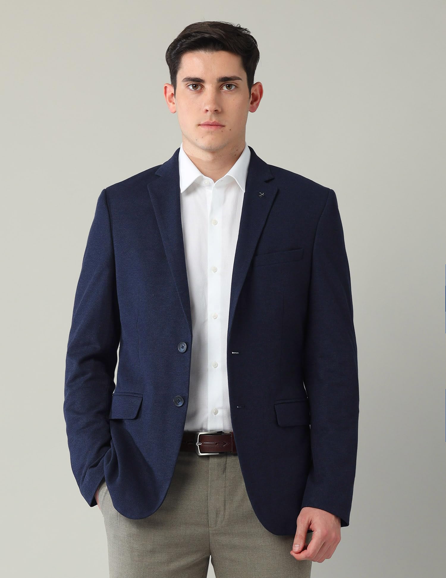 Arrow is known for its heritage of fine tailoring and timeless design. This slim-fit navy blazer is a wardrobe essential that transitions effortlessly from the office to evening occasions, making it a versatile and dependable choice.