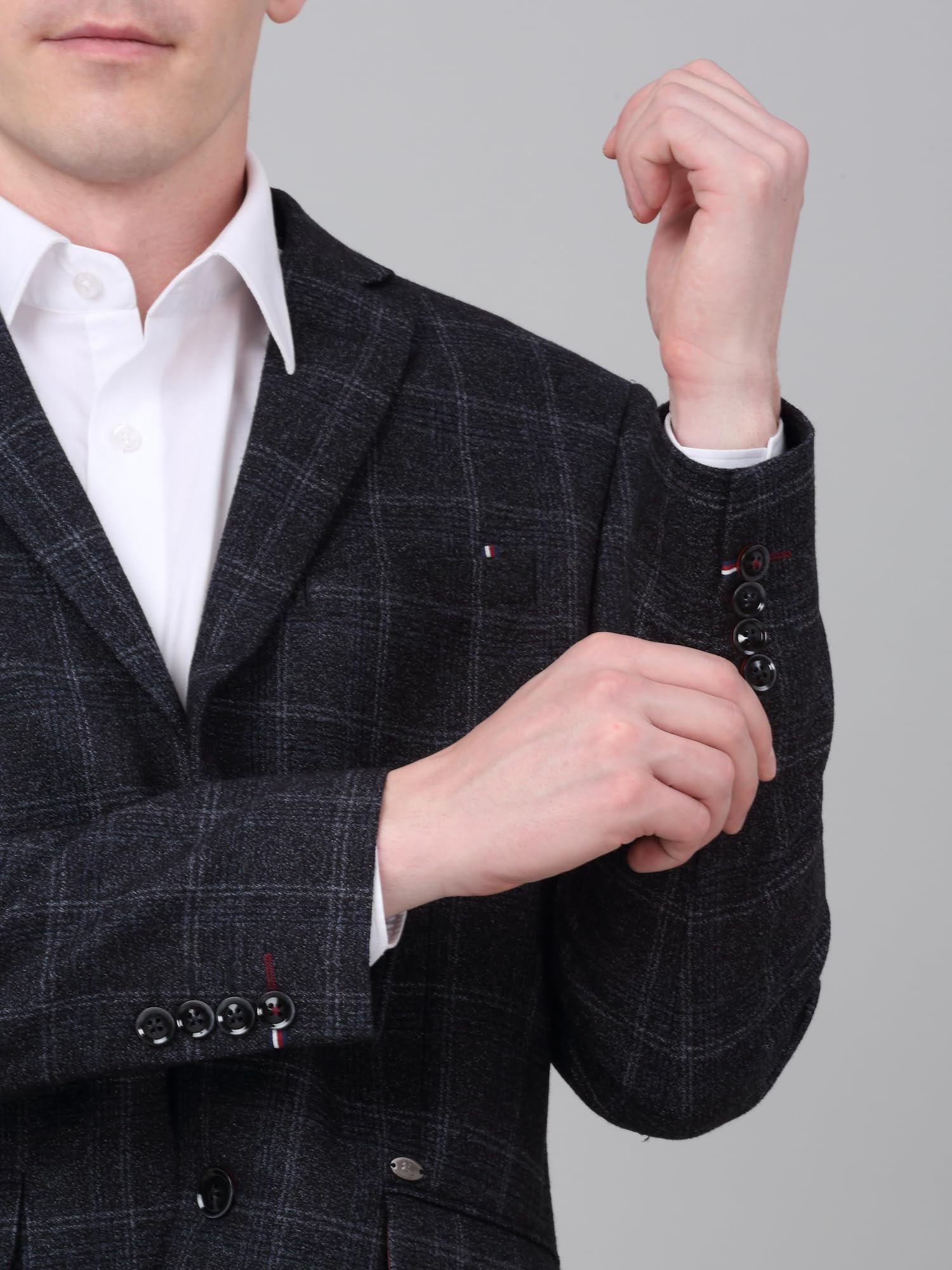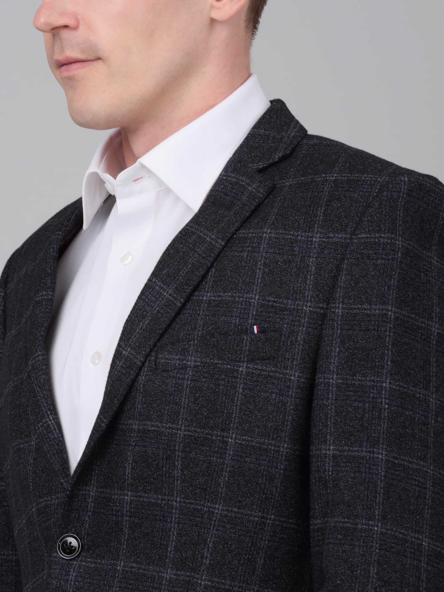 The charcoal color with a subtle checkered design adds versatility, making it easy to pair with shirts, trousers, or chinos for a range of formal and semi-formal outfits. Built to maintain its shape, this blazer keeps you looking sharp wear after wear.