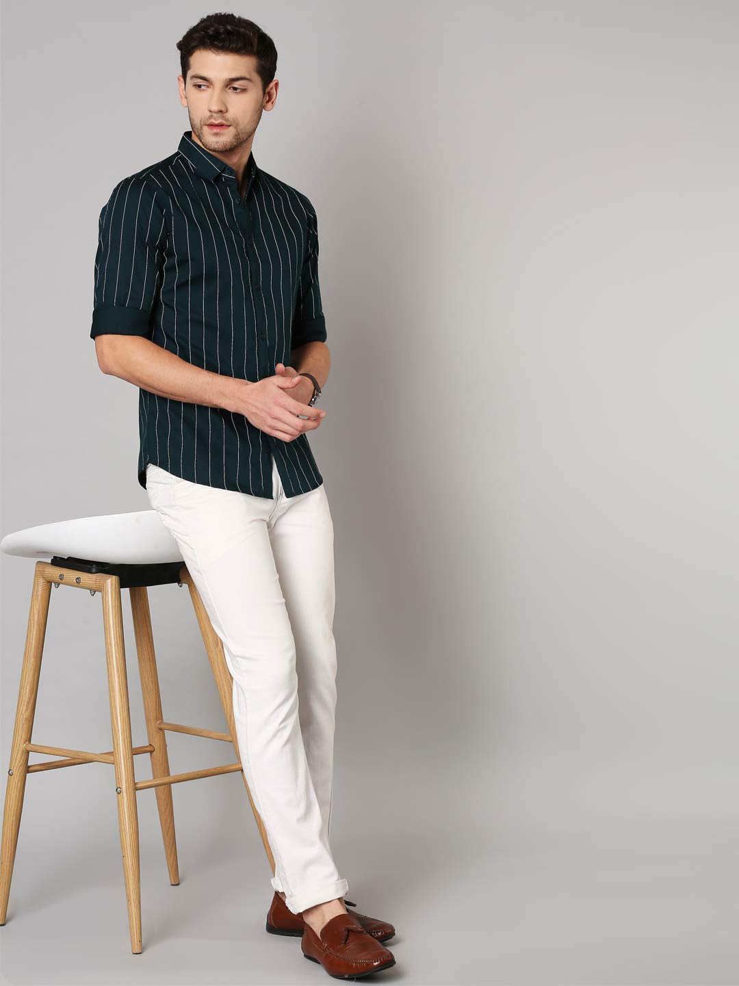 Upgrade your wardrobe with the Dennis Lingo Men’s Striped Slim Fit Cotton Casual Shirt (T-Green, M). Designed for a modern and tailored silhouette, this shirt combines contemporary style with everyday comfort.