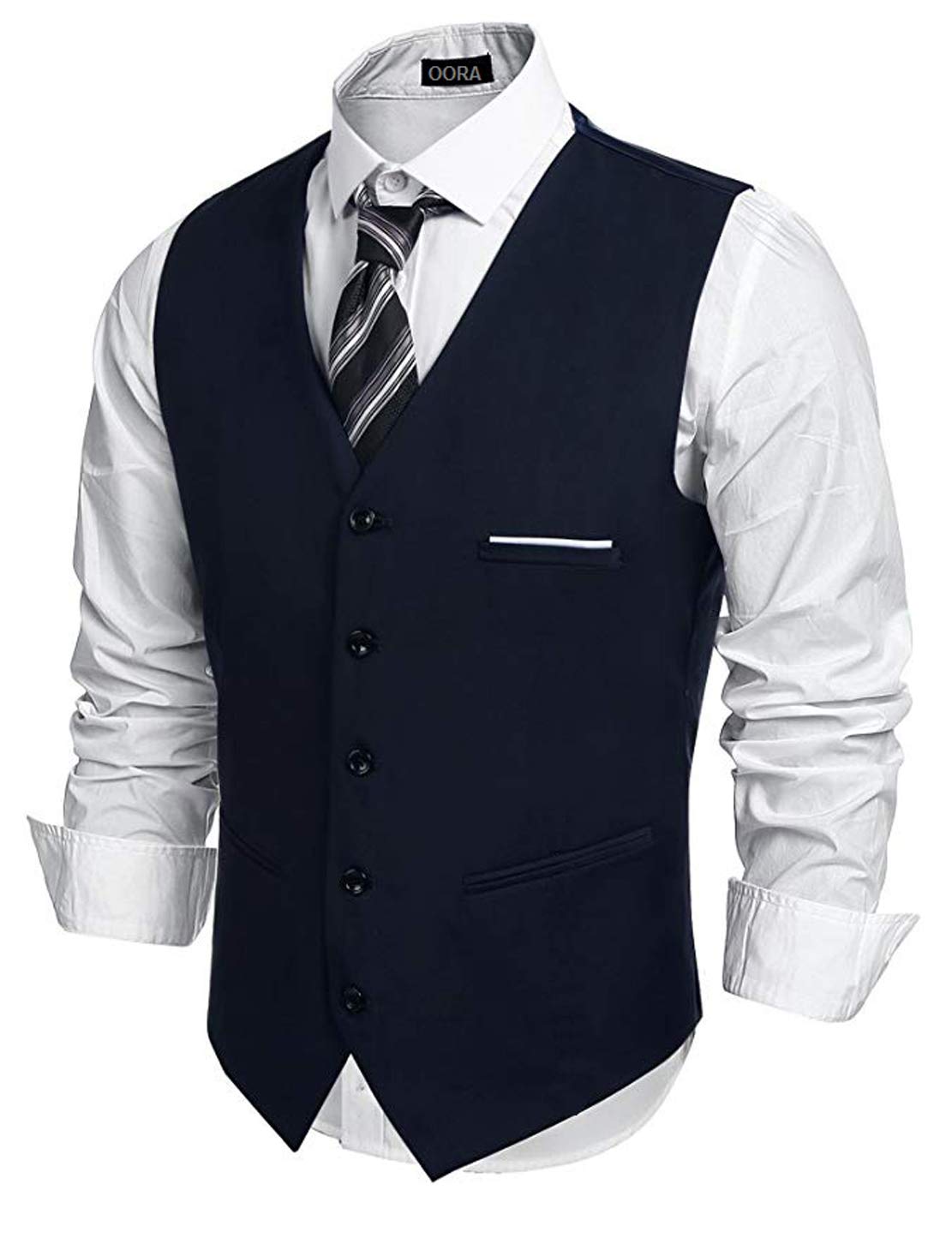 OORA is known for modern tailoring, high-quality fabrics, and versatile designs. This navy blue slim-fit waistcoat/jacket offers a perfect mix of elegance, comfort, and durability.