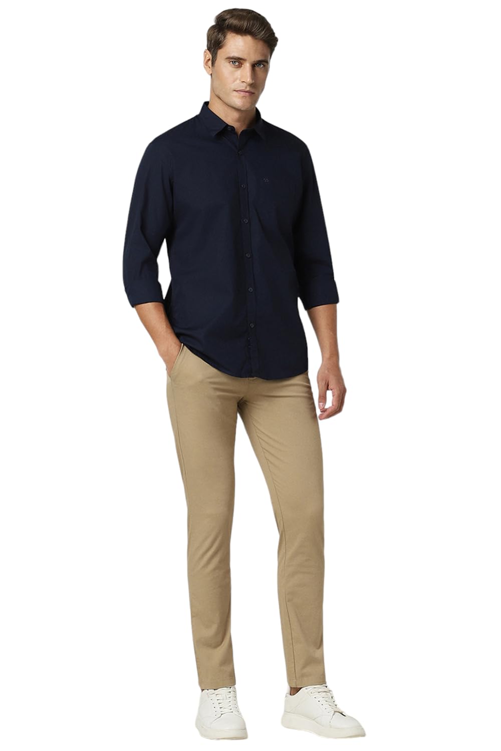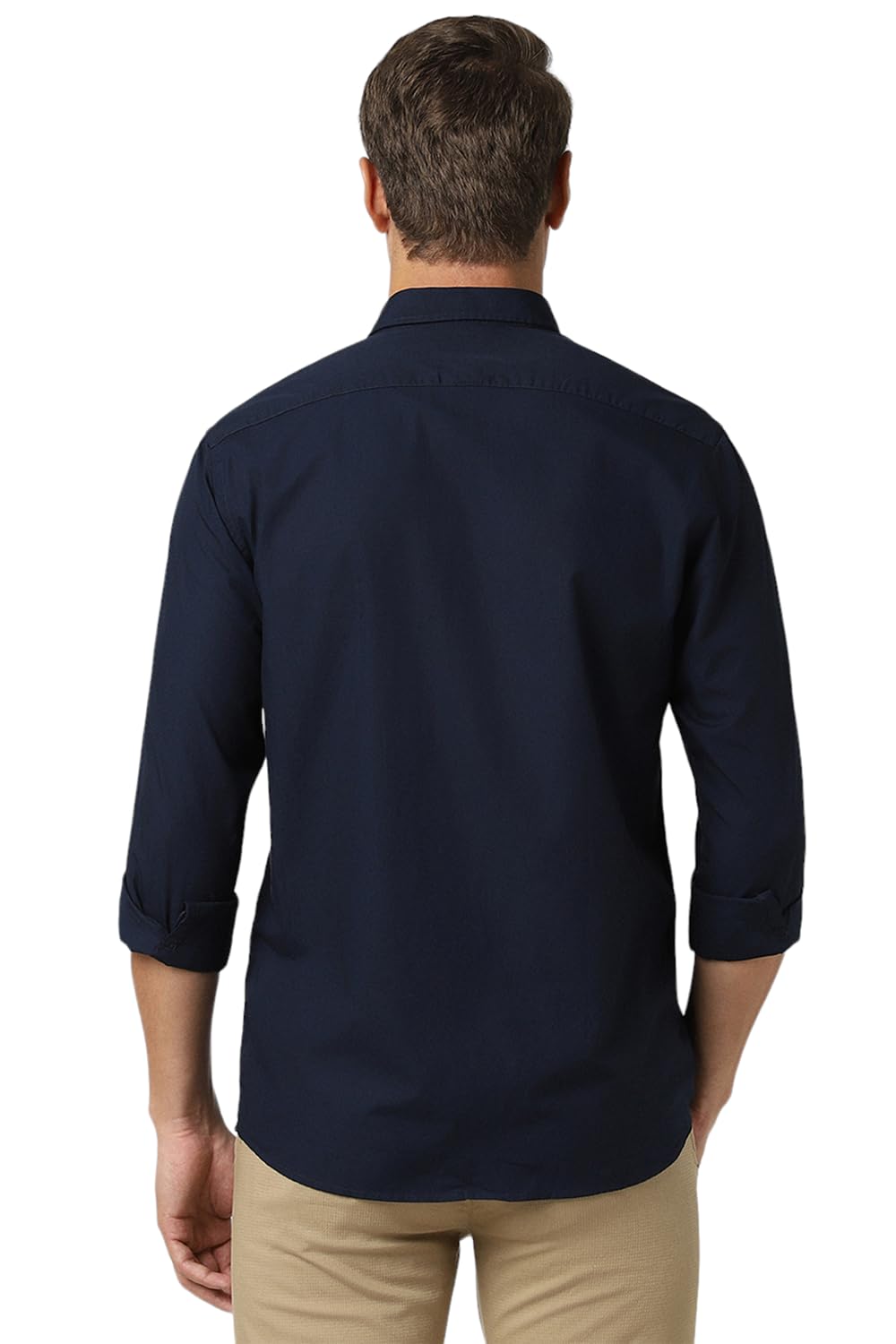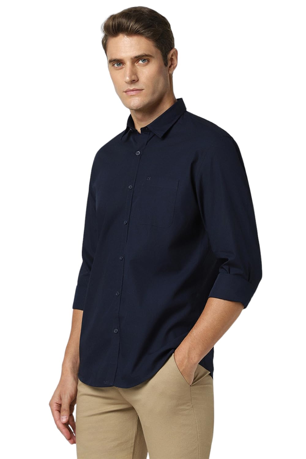 Peter England Men’s Solid Slim Fit Full Sleeve Casual Shirt| 100% Cotton Navy