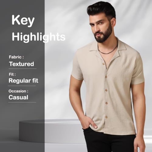 TAGDO Men’s Regular Fit Casual Shirt (Popcorn-5171-Cream-L)