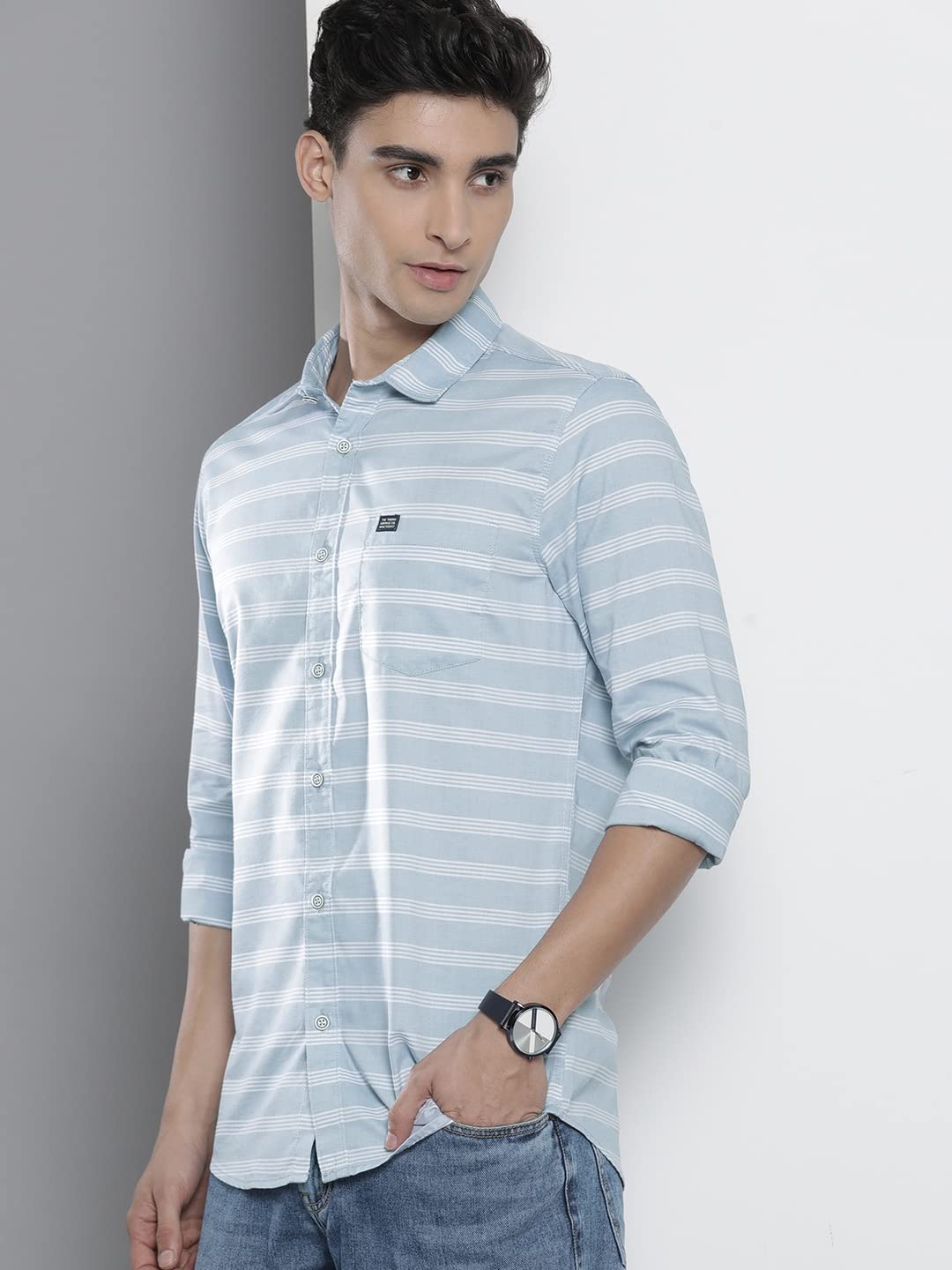 - Fashion : The Indian Garage Co, Men, Slim Fit, Striped, Casual Shirt, is designed with versatility in mind, and can be paired with a variety of items to elevate your look. For a casual day out, consider pairing a classic Casual Shirt with denim jeans or shorts and your favorite sneakers. If you’re looking to step it up a notch, try tucking Shirt into a cargos, chinos or trousers, and complete the outfit with boots for a more polished appearance.