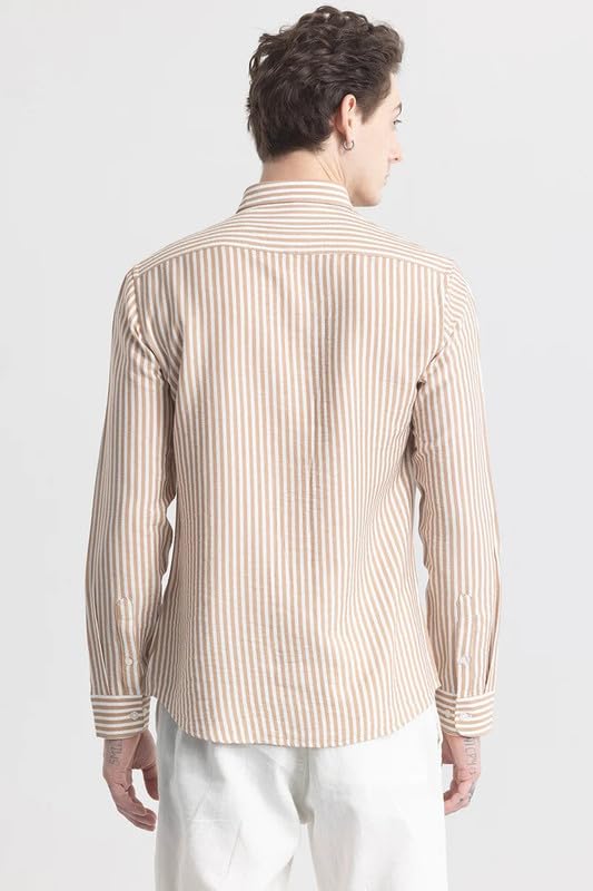 U-TURN Men’s Cotton Casual Printed Striped Stylish Latest Shirt for Men (Brown-Black; X-Large)