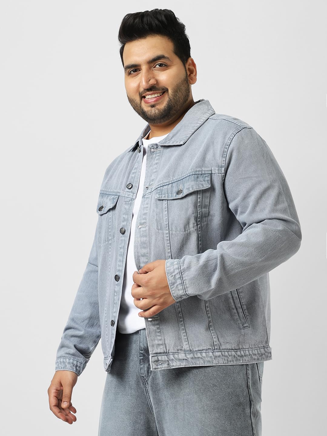 Urbano Plus Men’s Light Grey Regular Fit Washed Full Sleeve Denim Jacket (plusjaktp-denimball-lgrey-5xl)