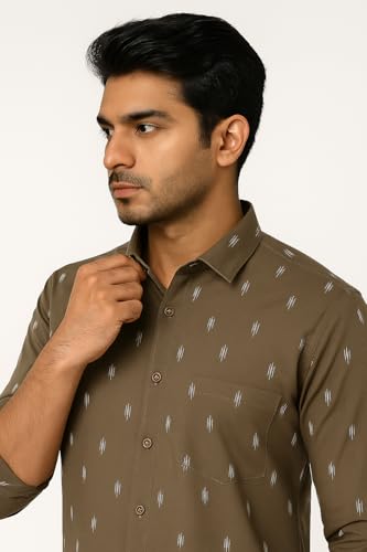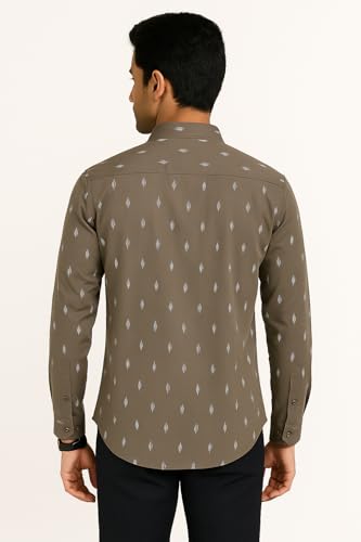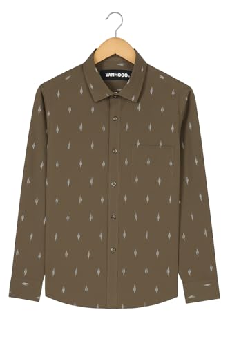 Vanhood Men’s Patterned Slim Fit Shirt | Print Full Sleeve | Formal and Casual Wear | Semi – Formal Shirt | Cotton (in, Numeric, 44, Brown)
